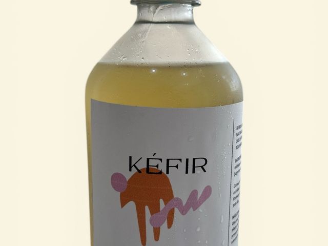 INGREDIENTES: AGUA FILTRADA, NÓDULOS DE KEFIR, AZÚCAR MASCABO, JUGO DE NARANJA Y JENGIBRE.