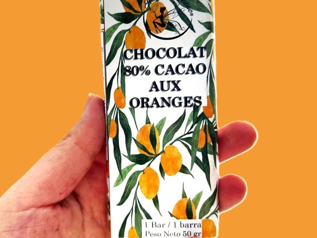 TABLETA CACAO PURO AL 80% Y NARANJITAS X 50 G