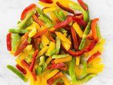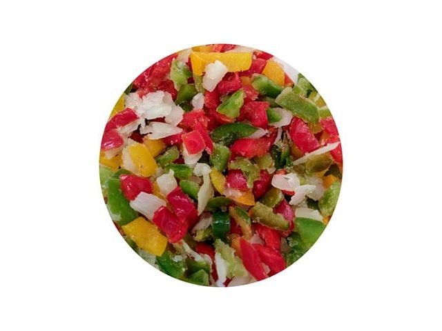 MIX DE PIMIENTO ROJO, PIMIENTO VERDE, PIMIENTO AMARILLO Y CEBOLLAS X 500 GRS