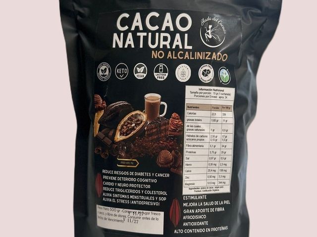 CACAO NATURAL, ORIGEN PERU. ALTO CONTENIDO EN PROTEÍNA. KETO.