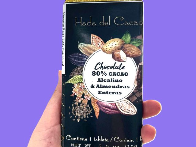 INGREDIENTES: CACAO AMARGO EN POLVO, MANTECA DE CACAO, ALMENDRAS, EXTRACTO NATURAL DE HOJAS DE STEVIA Y EXTRACTO DE VAINILLA.