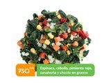 Espinaca, cebolla, pimiento rojo, zanahoria y choclo en granos.